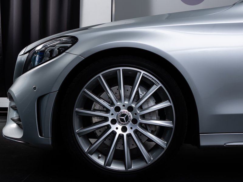 - LM-Felgen vorn/hinten: 7,5x19 / 8,5x19 (AMG, Vielspeichen schwarz, glanzgedreht)