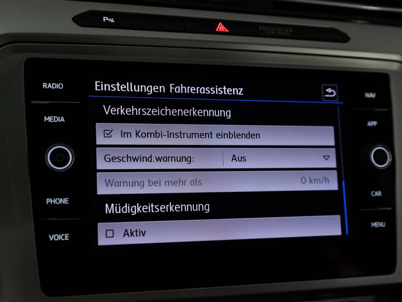 - Fahrassistenz-System: Autom. Distanzregelung (ACC) mit Umfeldbeobachtungssystem (Front assist, bis 210 km/h)