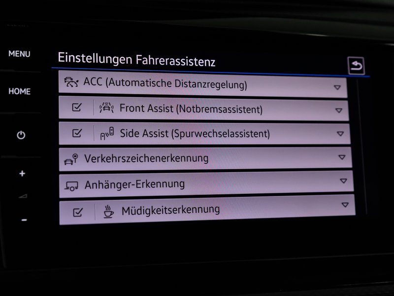 - Fahrassistenz-System: Autom. Distanzregelung (ACC) und Umfeldbeobachtungssystem (Front Assist, bis 210 km/h)